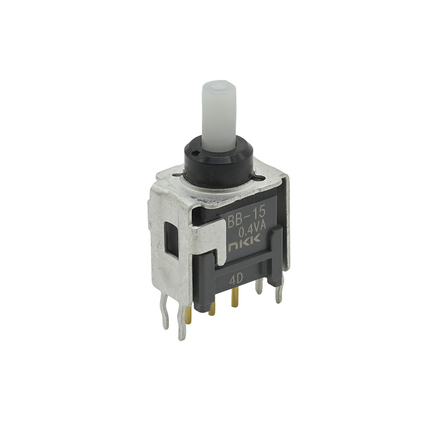BB形 押ボタンスイッチ(Bシリーズ)・ブラケットマウント形:単極双投・モーメンタリ形・丸洗い洗浄可能・ソフトな操作フィーリング・帯電防止樹脂(10OHM・CM以下)を採用・スライディングツインクロスバーコンタクト機構採用・インチピッチ(2.54MM)採用・使用温度範囲:-30~85℃・用途:OA機器、無線機、業務用ビデオカメラ、交換機、電気計測器、制御盤等・EU-RoHS指令対応 形名:BB-15AB