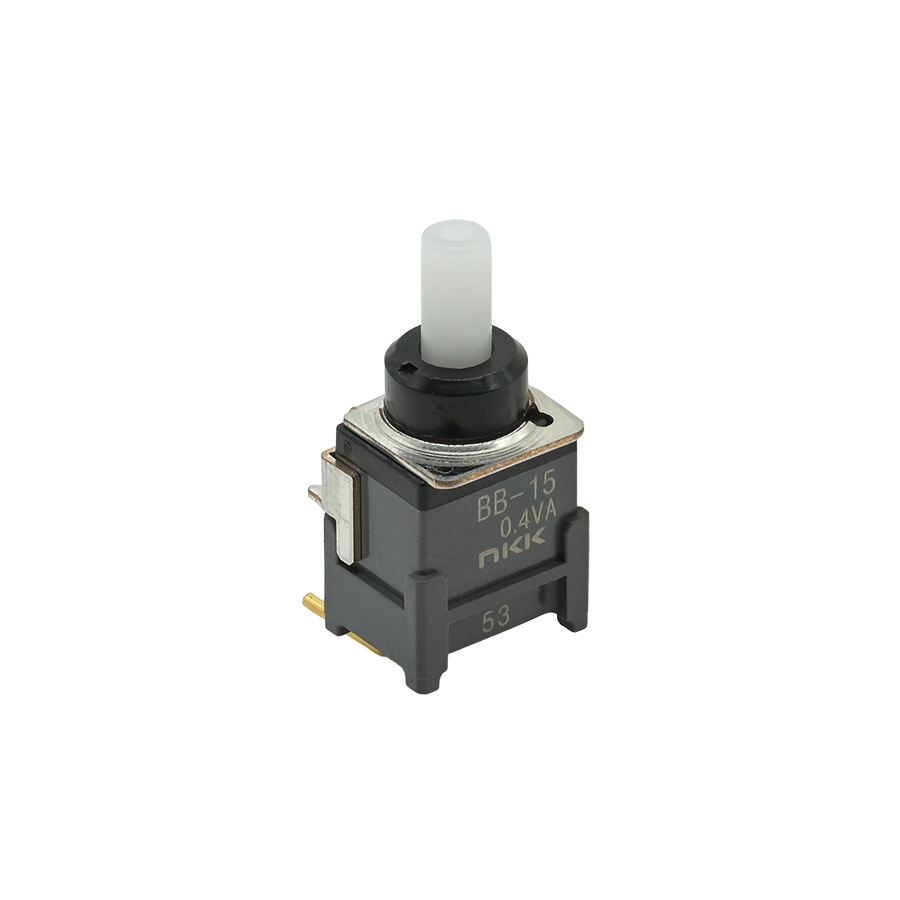 BB形 押ボタンスイッチ(Bシリーズ)・PC-H端子形:単極双投・モーメンタリ形・丸洗い洗浄可能・ソフトな操作フィーリング・1/2インチカードラックに適用可能・帯電防止樹脂(10OHM・CM以下)を採用・スライディングツインクロスバーコンタクト機構採用・インチピッチ(2.54MM)採用・使用温度範囲:-30~85℃・用途:OA機器、無線機、業務用ビデオカメラ、交換機、電気計測器、制御盤等・EU-RoHS指令対応 形名:BB-15AH