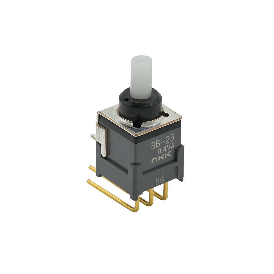 BB形 押ボタンスイッチ(Bシリーズ)・PC-H端子形:2極双投・モーメンタリ形・丸洗い洗浄可能・ソフトな操作フィーリング・1/2インチカードラックに適用可能・帯電防止樹脂(10OHM・CM以下)を採用・スライディングツインクロスバーコンタクト機構採用・インチピッチ(2.54MM)採用・使用温度範囲:-30~85℃・用途:OA機器、無線機、業務用ビデオカメラ、交換機、電気計測器、制御盤等・EU-RoHS指令対応 形名:BB-25AH