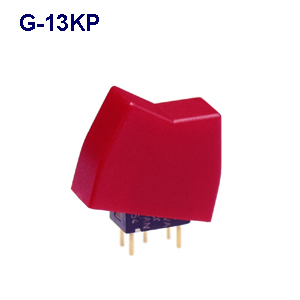 K形ロッカスイッチ(Gシリーズ)・PC端子形:単極双投・丸洗い洗浄が可能・ソフトな操作フィーリング・フラックスの浸入をシャットアウト・レバー倒れ角度(28度)が大きい・スライディングツインクロスバーコンタクト機構採用・端子間ピッチはインチピッチ(2.54MM)採用・全モールドタイプ・Aシリーズの1/3(体積比)・使用温度範囲:-25~85℃・用途:OA機器、無線機、業務用ビデオカメラ、交換機、電気計測器、制御盤等・EU-RoHS指令対応 形名:G-13KP