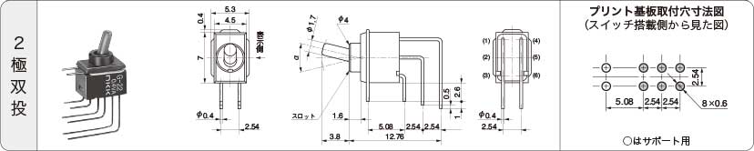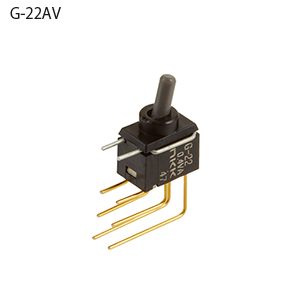 トグルスイッチ(Gシリーズ)・PC-V端子形:2極双投・操作部形状:基本レバー・丸洗い洗浄可能・ソフトな操作フィーリング・フラックスの浸入をシャットアウト・1/2インチカードラックに適用可能・レバー倒れ角度が大きい:28度・スライディングツインクロスバーコンタクト機構採用・全モールドタイプで静電耐圧に優れる・端子間ピッチはインチピッチ(2.54MM)採用・使用温度範囲:-25~85℃・用途:OA機器、無線機、業務用ビデオカメラ、交換機、電気計測器、制御盤等・EU-RoHS指令対応 形名:G-22AV