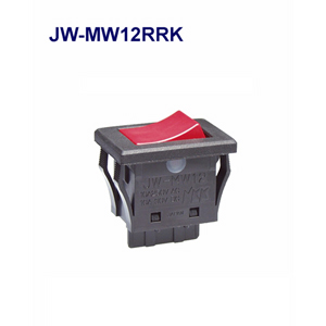 MWタイプ全モールドロッカスイッチ(防水形)JWシリーズ・はんだ端子、タブ端子:単極双投・本体色:黒・操作部色:赤パネル防水(IP67適合)・スナップイン取付け・DC定格に対応・フラックスの浸入をシャットアウト・軽快な切換え動作・使用温度範囲:-25~85℃・用途:通信機器/無線応用装置、電子計測器、オートメーション機器、事務用機器、民生用電子機器等・EU-RoHS指令対応 形名:JW-MW12RRK