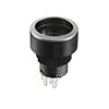 丸形照光式押ボタンスイッチ(YB2シリーズ)・はんだ端子形(銀接点):単極双投・機能動作:ロック形・操作部形状:丸形・ねじ取付けタイプ・超高輝度対応・パネル前面高さ1.8MM・パネルシール防水・豊富な発光素子群・フラックス等の浸入をシャットアウト・文字/記号等の表示可能・フランジの色:ステンレス調・省スペース化に貢献・ロングストロークで軽快な操作感・はんだ/タブ兼用端子・操作部ボタン及び発光素子は別売り・使用温度範囲:-25~50℃・用途:通信機器/無線応用装置、電子計測器、オートメーション機器、事務用機器、民生用電子機器等・EU-RoHS指令対応 形名:YB2-16CWCPS1