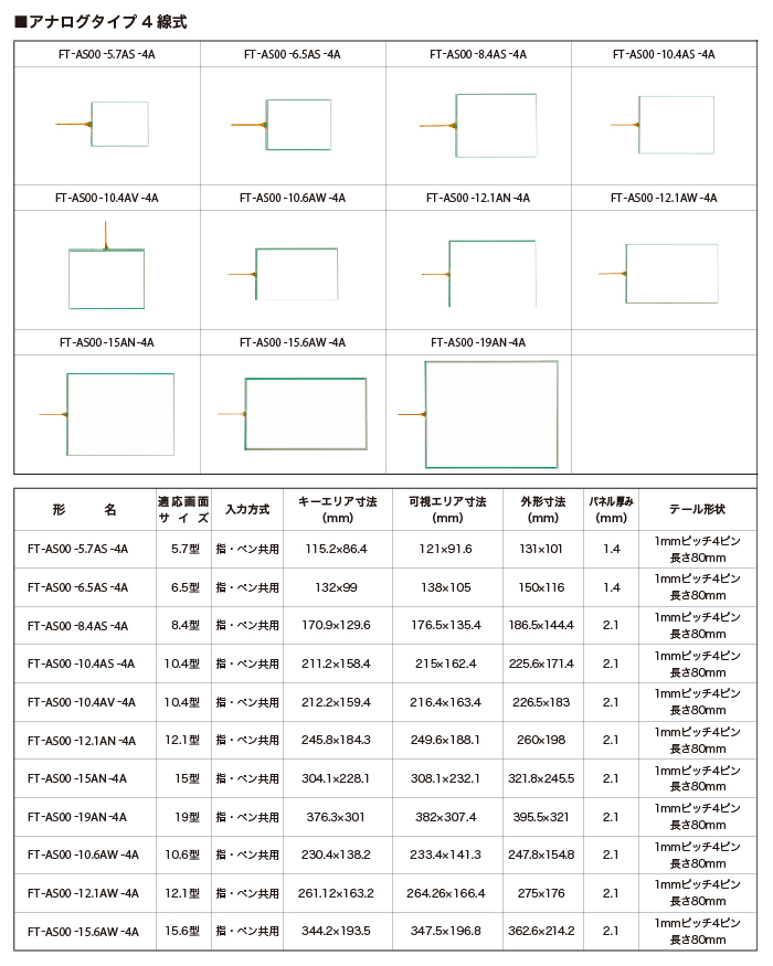 FTシリーズ アナログタイプ4線式 タッチパネル