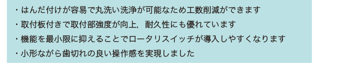 NR01シリーズ ロータリスイッチ 歯切れの良い操作感 正確な操作を求める機器に最適 小形だけど頼もしい 様々なお客様のご要望に応えました。 NR01シリーズの特徴 NR01シリーズの共通仕様 形名体系 操作部 導入メリット 使用イメージ 基板実装形ロータリスイッチ比較表 詳しい仕様や外形図等はこちらでご確認ください。 NR01シリーズ ロータリスイッチ ロータリスイッチ 全シリーズ 発売日 2017年7月3日 こちらの商品についてのお問合せはこちら 新商品一覧に戻る